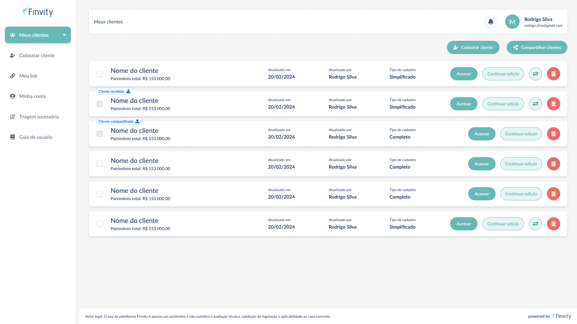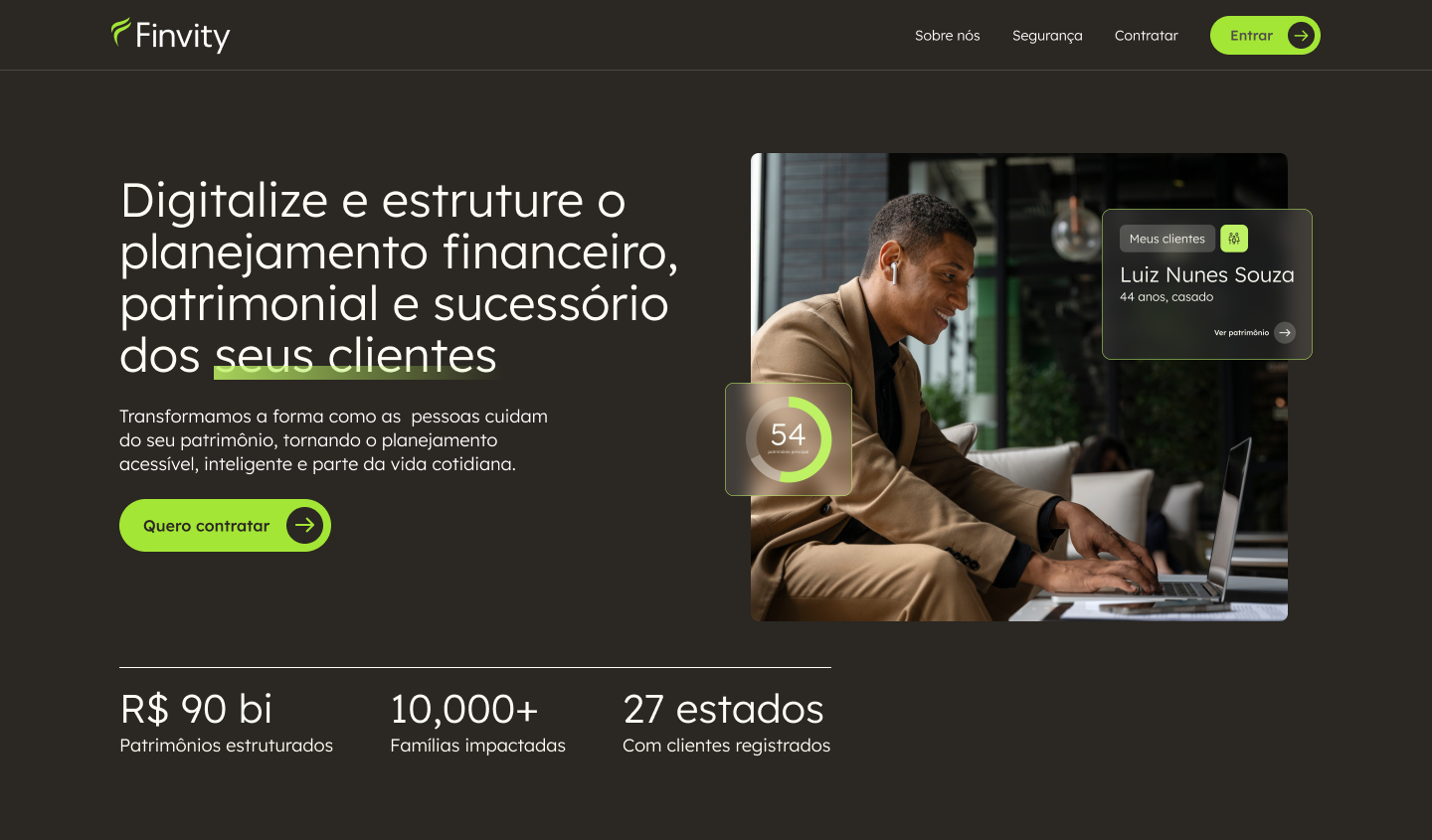 A Finvity é uma plataforma SaaS voltada para gestão patrimonial, tributária e sucessória.